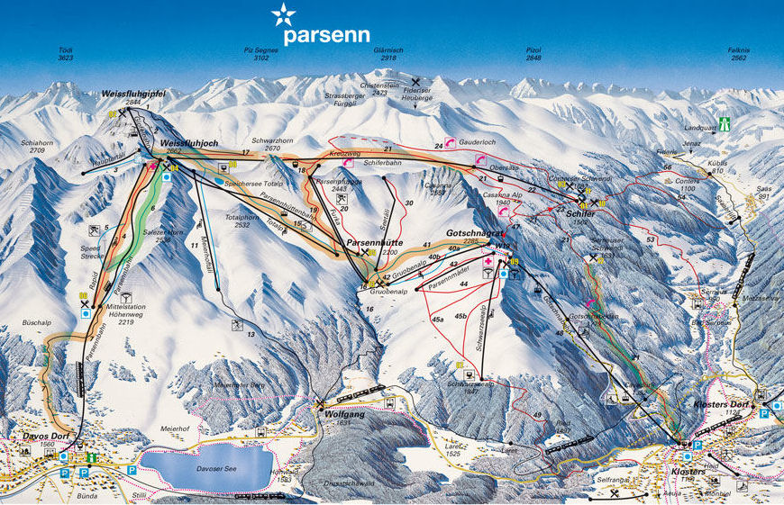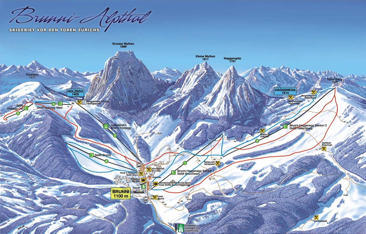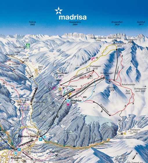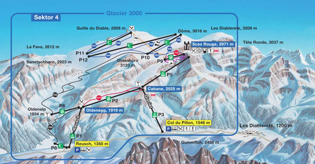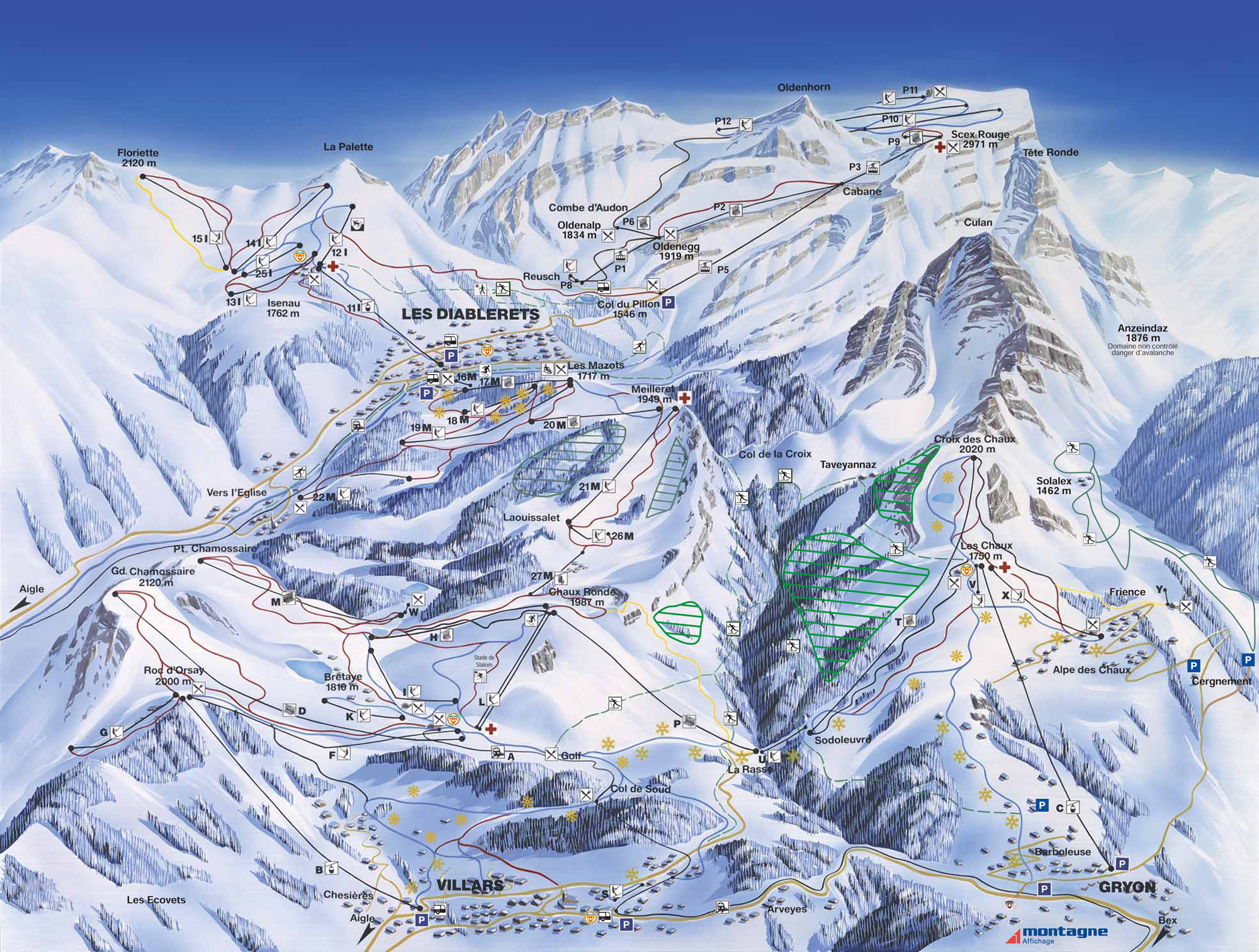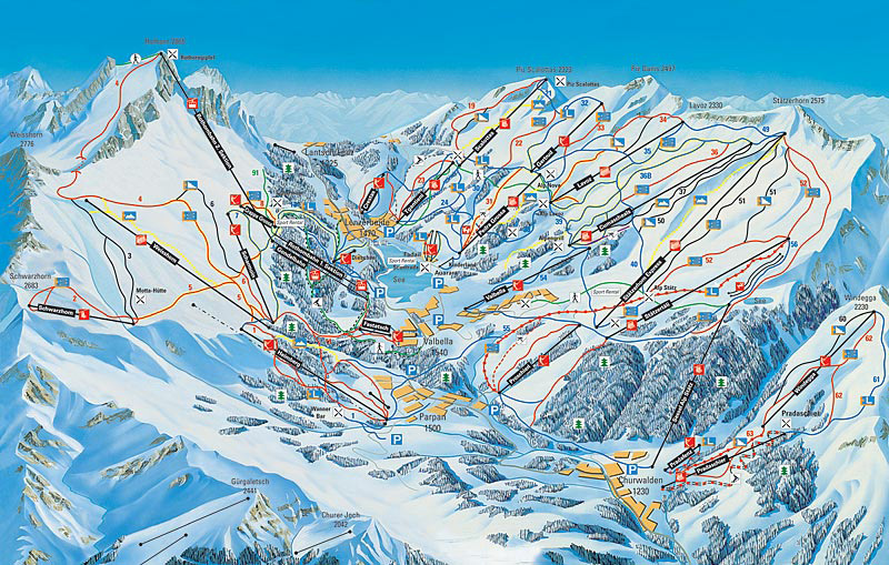 There are piste maps (trail maps) on file for the following places in Switzerland. Simply click on the thumbnail to access the best, most recent piste map we have available. Click on the place name to be taken to the page for the resort associated with the place name. Please feel free to advise of more recent piste maps or any copyright issues at this page. More summary resort information is available by using the resort finder.